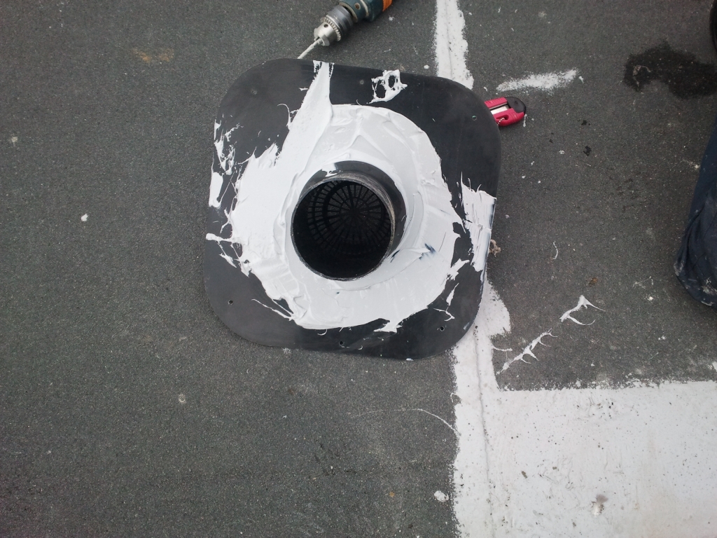 Вид работ: Ремонт водосливной воронки на плоской кровле